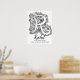 Pretty R monogram black ink drawing Zen style doodle. Art name and meaning inked doodle art poster is perfect for a girls bedroom. Personalize with your child's own name beginning with R, and name meaning for a truly personalized touch to your child's bedroom or nursery, this example is for the name Rachel A ewe. Strong willed, clever and kind, a loving friend. Choose the matt poster finish and you can colour it in or gift it to a friend who loves colouring. © Unique R monogram drawing featuring items begining with R including, running rabbits, rainbows, roses, rockets, and raspberries. Description original ink drawing and design by Sarah Trett. www.sarahtrett.com for www.mylittleeden.com