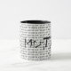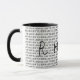 CELEBRATE MARCEL DUCHAMP'S PIECE FOUNTAIN. HE USED THE ALIAS R. MUTT WHEN HE SUBMITTED A URINAL TO THE SOCIETY OF INDEPENDENT ARTISTS ART SHOW IN 1917. HIS READYMADE CAUSED AN UPROAR. TO REMEMBER THIS THE MUGS SAYS R. MUTT. UPSIDE DOWN IN THE BACKGROUND HAS MARCEL DUCHAMP'S NAME REPEATED OVER AN OVER