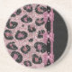 RAB Rockabilly Pink Leopard Print Ribbon Bows Coaster