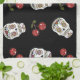 RAB Rockabilly Sugar Skulls Cherries On Black Kitchen Towel