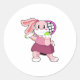 Rabbit at Tennis with Tennis racket Classic Round Sticker