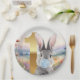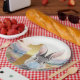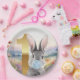 Rabbit blowing blue bubble gum First birthday Paper Plate