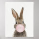 Rabbit Blowing Pink Bubble gum Poster