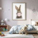 Rabbit blowing a pink bubble gum. Nursery art to decorate your child's room.