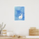 Black and white pencil sketch of a sweet white rabbit set against a blue background. A great card or gift for Easter or for lovers of fluffy white bunnies! Also matches the: