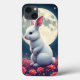 A cute rabbit sitting in a pink flower field under the dreamy moonlight, the delicate details create a warm and comfortable feeling.