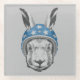 This design features a rabbit wearing a vintage style motrocycle helmet.