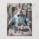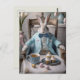 Rabbit in a blue coat and bow tie postcard