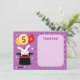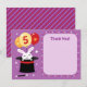 Cute and fun magic show birthday party flat thank you card featuring a little rabbit in a magicians hat. Behind are balloons with stars and customizable age. Customizable text "Thank you".
