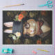 Add whimsical charm to your crafts with our Rabbit Portrait Decoupage Paper. This dapper rabbit, adorned in a suit, hat, glasses, and flowers, infuses playfulness and style into your creations. Unleash your imagination today!