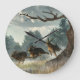 Three brown rabbits dash across a field lined with dark fir trees. In the early winter, a light snow broken by patches of brown and yellow grass covers the ground, while dense, dark clouds fill the sky. It is a cold and blustery scene, yet, as these three speeding bunnies race past an old oak, they kick up a shower of the loose powder in an exhilarating race.