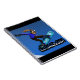 A young rabbit enjoys the thrill of snowboarding by showing off his moves down a steep snowy mountain.