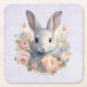 Rabbit Surrounded by Pastel Flowers Cute Square Paper Coaster