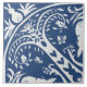 This tile design in navy / dark blue / indigo and white features bunny rabbits, birds, butterflies and stylized leaves and foliage. Use as a trivet or as a decor accent. Multiple tiles can be patterned on a flat / wall surface for an intricate, unusual pattern that will appeal to rabbit, animal and nature lovers. A modern twist to traditional tile art. Whimsical, original artwork & design by Tuzi Williams.