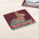 Rabbit with Holly Berries and Plaid Paper Coaster