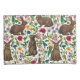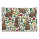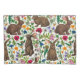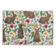 Hand-drawn rabbits and woodland flora,ferns mushrooms and beriies and bugs