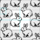 A repeating pattern with a rabbit motif arranged in alternating directions.