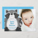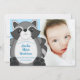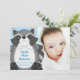 Raccoon baby shower design is cute and sweet for a woodland animals theme baby shower and great for a boy with the blue background! The fun stuffed animal style cartoon is a great look for a new baby celebration!