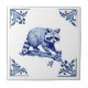 "blue and white delft", "dutch raccoon ceramic tile", "historic vintage antique forest woods", "racoon on branch rustic country", "17th 18th century minimal woodland", "flower floral corner flourish", "navy monochrome historic decorative", "monochromatic wildlife wild animal", "traditional countryside animals", "simple classic European creatures"