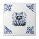 Raccoon Delft Blue White Corners Woodland Animals Tile