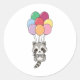 Raccoon Flies Up With Colourful Balloons Classic Round Sticker