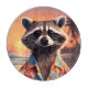 Funny Raccoon wearing a hawaiian shirt on a beautiful beach.