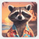 Funny Raccoon wearing a hawaiian shirt on a beautiful beach.