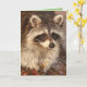 Captivating raccoon watching attentively while dining on her handout of table grapes.