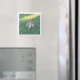 This square magnet captures a charming young raccoon energetically stomping through lush green summer fescue. A beautiful sunlit highlight shines through the grass in the background, adding a touch of warmth and **ecology** to the scene. A delightful way to bring a bit of nature's playful energy to any magnetic surface.