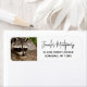 Étiquettes de adresse avec une photo d'un joli et curieux raton laveur reposant son visage sur un rondelle de bois. Adorable.
