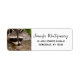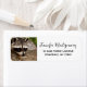 Étiquettes de adresse avec une photo d'un joli et curieux raton laveur reposant son visage sur un rondelle de bois. Adorable.