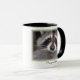 Beautiful face shot of Zorra raccoon on ringer mug (black)