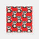 Cute little cartoon Raccoon Pattern Design on a Red background