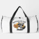 This white duffle bag features a cute cartoon raccoon holding a slice of pizza with a mischievous grin, accompanied by the text "Steal hearts, not trash... but maybe both." This humourous and quirky design is perfect for those who love raccoons and a bit of playful mischief. Edit colour of the bag caps and body in the Design tool to your favored colours.