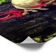Raccoon skull old log with ferns and red Monarda Poster