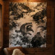 This playful raccoon tapestry features a curious wildlife moment as the raccoon splashes through a forest stream with cascading waterfalls, moss-covered rocks, and delicate ferns. Created with flowing black and white ink wash painting techniques, the artwork captures detailed fur texture, water movement, and atmospheric forest depth that creates a lively, natural ambiance. Perfect for nature lovers, wildlife enthusiasts, cabin decor, woodland aesthetic, rustic home style, or as a meaningful gift for hikers, outdoor adventurers, and animal admirers. This premium quality tapestry (50" x 60") brings the spirited energy of forest wildlife into any space, creating a charming, whimsical, and nature-inspired atmosphere ideal for bedrooms, living rooms, offices, or children's rooms.