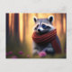 Introducing the latest addition to our postcard collection - the adorable raccoon with a scarf, standing on a forest clearing. This charming little fellow is sure to melt your heart with his irresistible cuteness! With his stylish scarf and curious expression, he's a perfect representation of the unique and endearing wildlife found in our beautiful forests. But does he look worried? You decide! The thoughtful gaze in his eyes hints at a world of mysteries just waiting to be uncovered. This postcard is a great way to brighten up someone's day, send a special message to a friend, or simply add to your collection. Don't wait any longer, bring a little bit of the forest into your home with this stunning postcard!