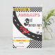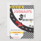 Rendez-vous et fêtez avec cette voiture de course haute énergie et modifiable invitation de troisième anniversaire! Conçu avec des couleurs audacieuses, des drapeaux à damiers et une voiture rouge rapide, ce modèle est parfait pour le grand jour de votre petit. Troisième anniversaire 5x7 pouces