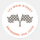 Race Car birthday return address Classic Round Sticker