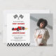 exquisite Cute race car theme baby shower invitation card with a blue antique automobile with flames illustration