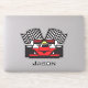 Race Car Design Contour Sticker with optional text, available in various sizes.