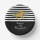 Party paper bowls feature a faux gold glitter racehorse and jockey on black and white stripes with your custom personalization on black. Change the wording for your party, birthday party, retirement party, Derby party, Derby bridal shower and more. MATCHING items in our store.