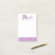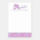 Rachel personalized R name meaning or message post it notes. Initial R monogram name and meaning in purple, pink and white. Ideal for a personalized gift for a girl who has a name that starts with the letter R. This example reads Rachel Strong willed, clever and kind, a loving friend or you can customize the text with your own name or message if required. Makes a unique office celebration gift. © Decorative letter R flowers with hearts hand drawn and pattern uniquely created by Sarah Trett for www.mylittleeden.com