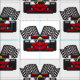 Racing Car Design Fabric featuring a tiled design of red race cars on a customizable background colour.