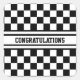 Matching racing winners flag with words expressing praise for an achievement or good wishes on a special occasion.