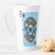 This Jack of Diamonds is a racing cyclist who also happens to be a gorgeous panther chameleon. The image is from a large acrylic painting I did for a whimsical playing card series. Later I took all the images from the paintings and used them to create an Animal Royalty Playing Card Deck, which I sell on Etsy. (This was the second such deck; go to my Etsy store, Animal Playing Carts, to see the first one!). See if this determined little chameleon can help energize your day on this 17 oz large latte mug!