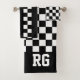 Racing Flag Black White Chequered Personalized monogram bathroom towels from Ricaso