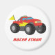 Vroom! Vroom! A fiery red racing monster truck with flames on the side for the little racer! A cool and colourful race vehicle which little boys will love especially if they love racing vehicle toys. Personalise with child's name.