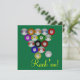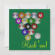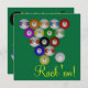 Billiard balls in an 8 Ball rack formation against a pool table green coloured background. Rack 'Em on the front, party details on the back. Personalize to fit your party! Great design for budding pool players and sharks alike! What's your favourite game? League players, APA, UPA, BCA, or casual shooters will love these! Visit our store for more Pool Shark and Billiard designs!