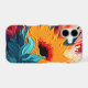 This striking abstract artwork explodes with color, texture, and emotion, capturing the essence of a flower at the height of its vitality. A luminous golden-yellow bloom dominates the composition, its dark center drawing the eye inward, while surrounding petals and forms burst outward in rich reds, deep teal blues, creamy whites, and soft coral tones. Thick, sculptural brushstrokes create a powerful sense of movement, making the piece feel alive and intensely expressive.